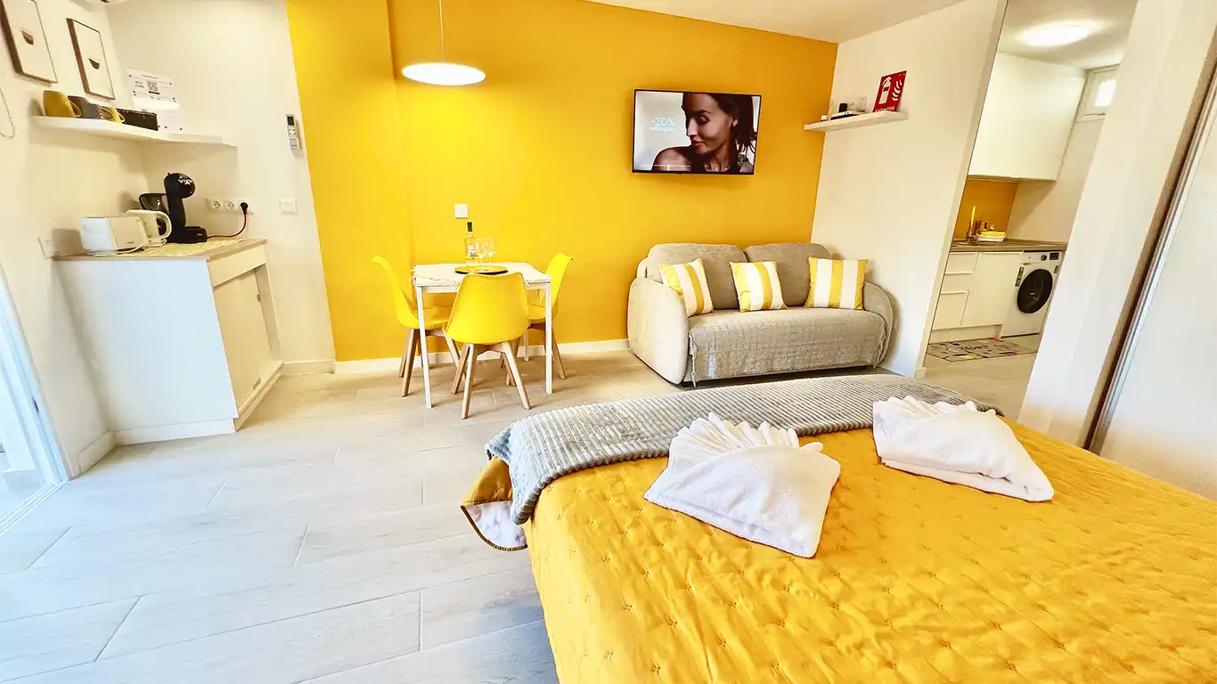 Este acogedor estudio en Playa de Las Américas (Reformado en Diciembre 2025) es una opción perfecta para quienes buscan una estancia práctica, cómoda y bien ubicada en el sur de Tenerife.